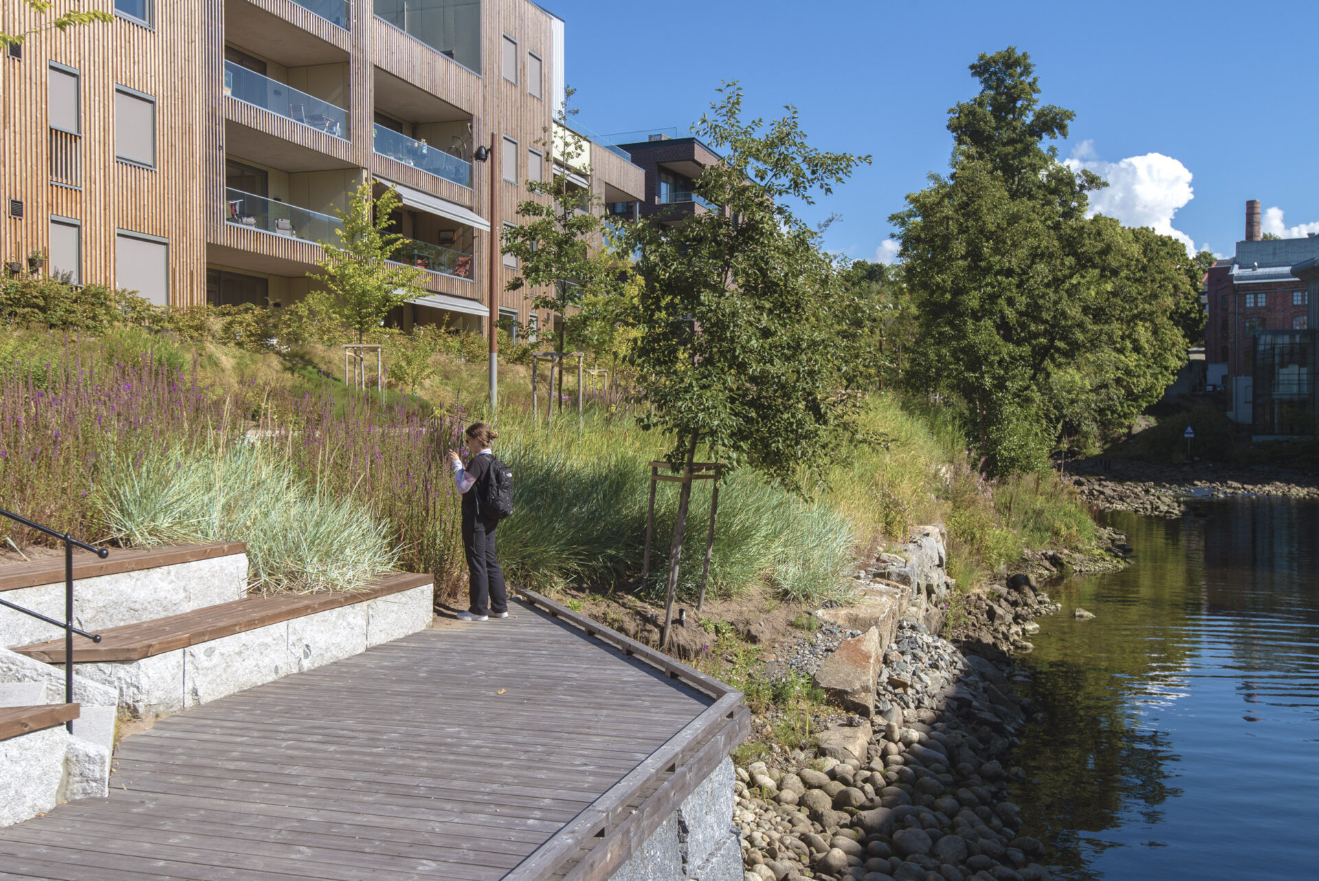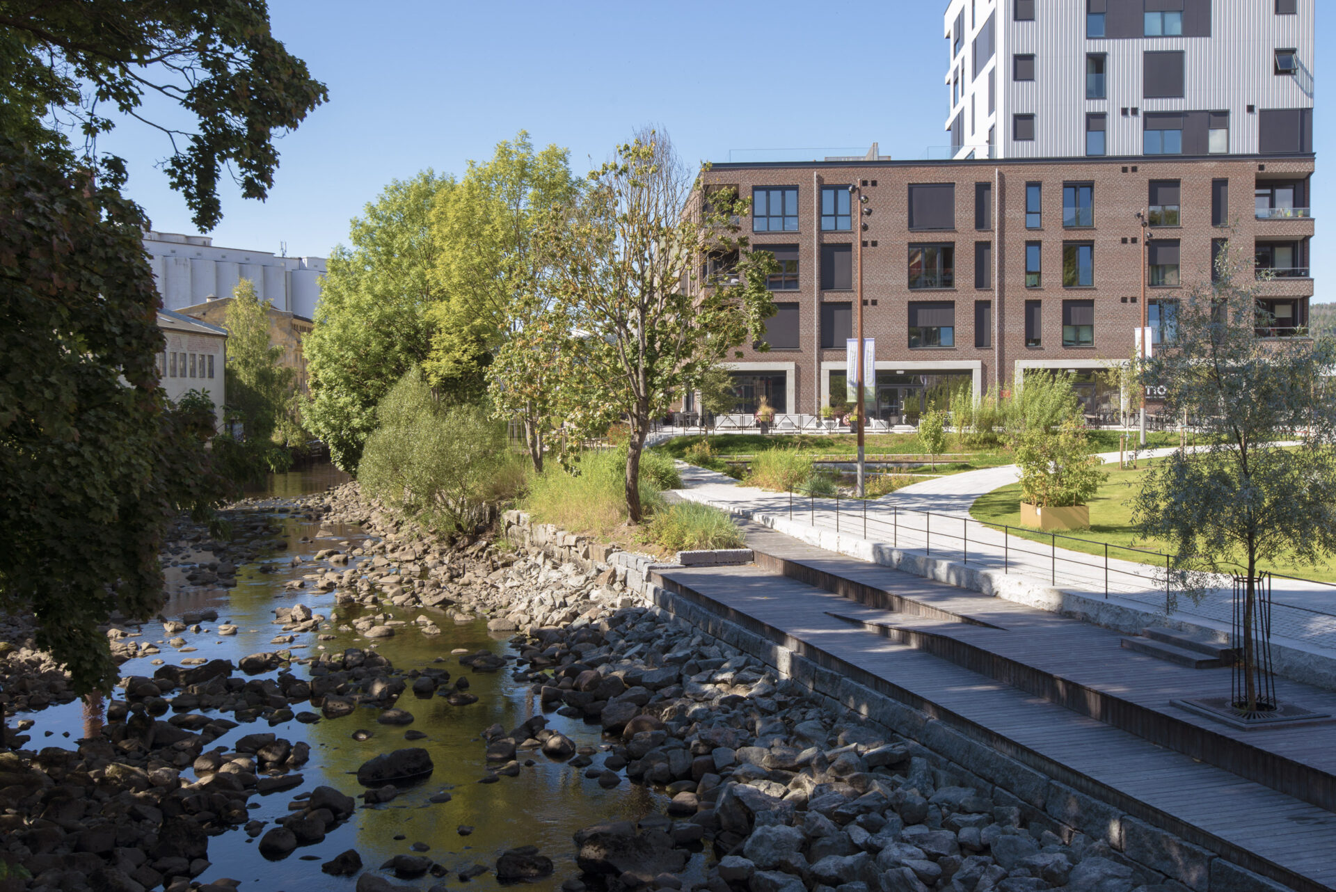 Verket utformes med en overordnet strategi om å forstå vann som en ressurs for økt biologisk mangfold og et økende behov for bynatur i et urbaniseringsområde. Overvann fra takvann og terreng skal håndteres lokalt i åpne løsninger med lokale rensedammer og regnbed. Overvann forståes som en kvalitet som bidrar til å skape vakrere byrom og gårdsrom. Forursenset vann fra kjøreveier vil samles i vegetasjonsgrøfter og renses før det når Mossesundet.